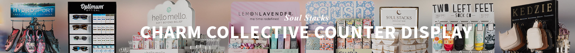 This rotating counter fixture showcases the original 200-piece collection in a compact, easy-to-shop format. Designed for visibility and customer interaction, this display features a video header to draw attention and two magnetized trays with complimentary try-on bracelets, allowing customers to explore the collection hands-on and design their perfect charm bracelet!