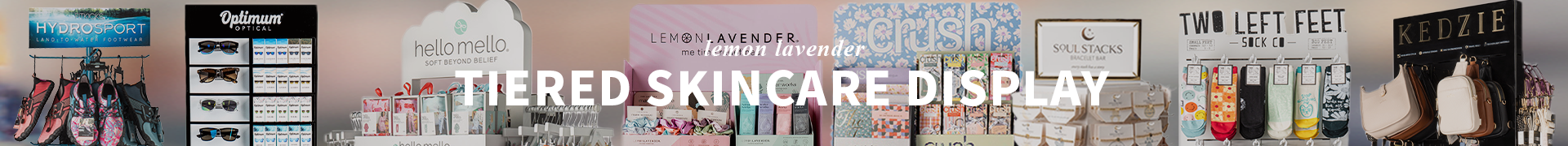 Showcase popular skincare items on a tiered counter display! The perfect way to merchandise multiple best-sellers in one compact space.